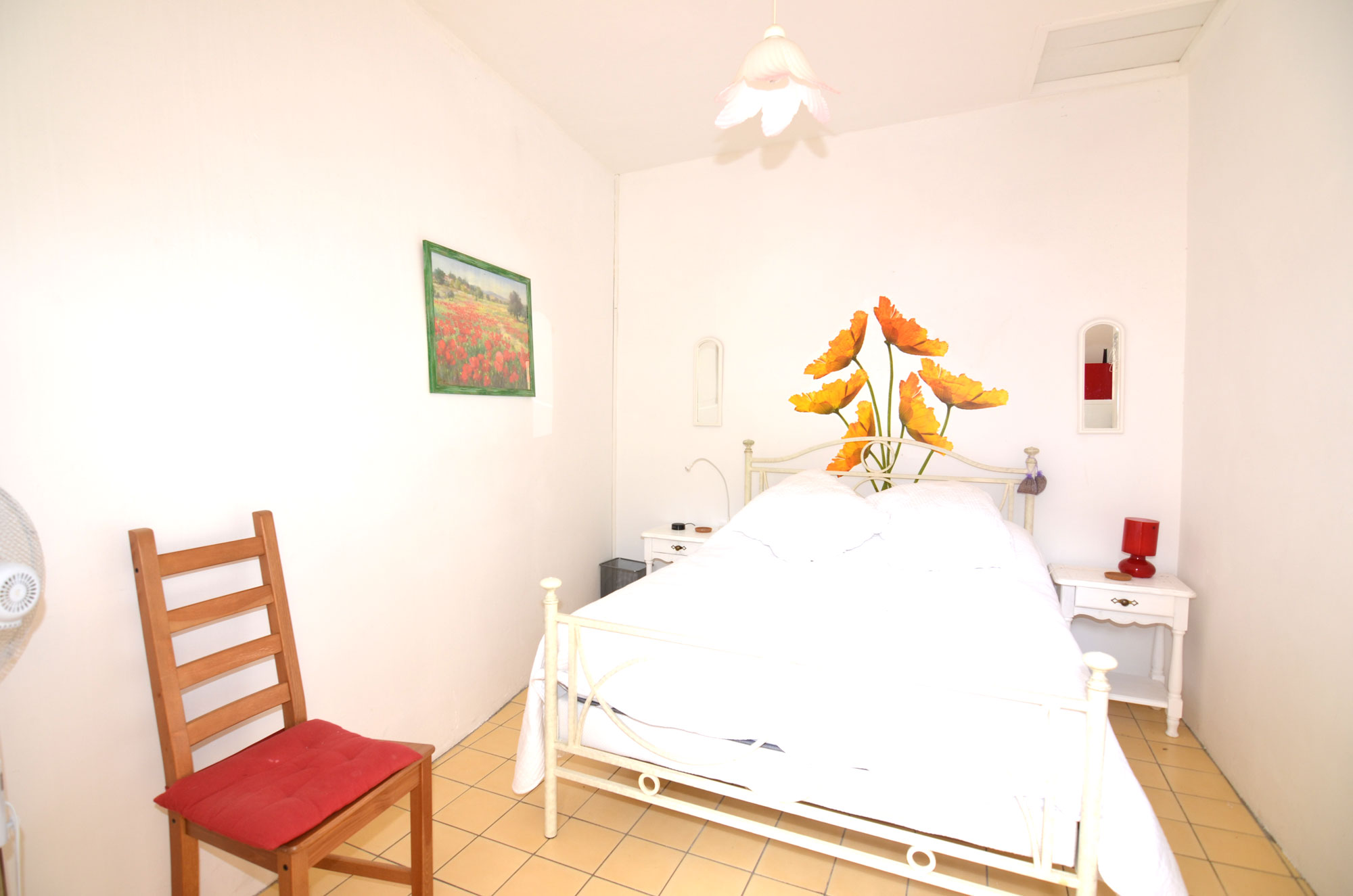 Jolie maison de vacances rénovée sur deux niveaux avec balcon et petite cour, 2 chambres, salle de bains ; toiture neuve, poêle à bois et climatiseur réversible ; vendu meublé !