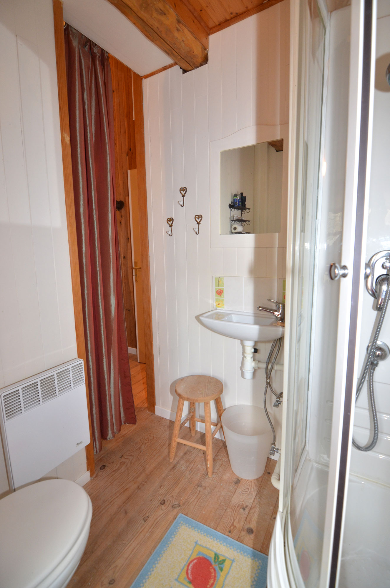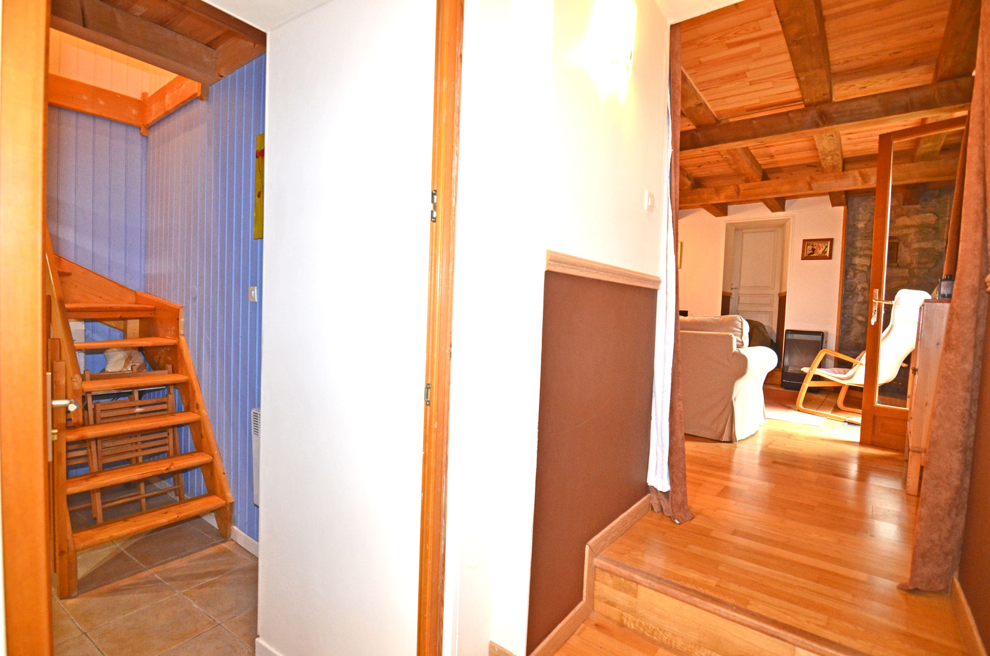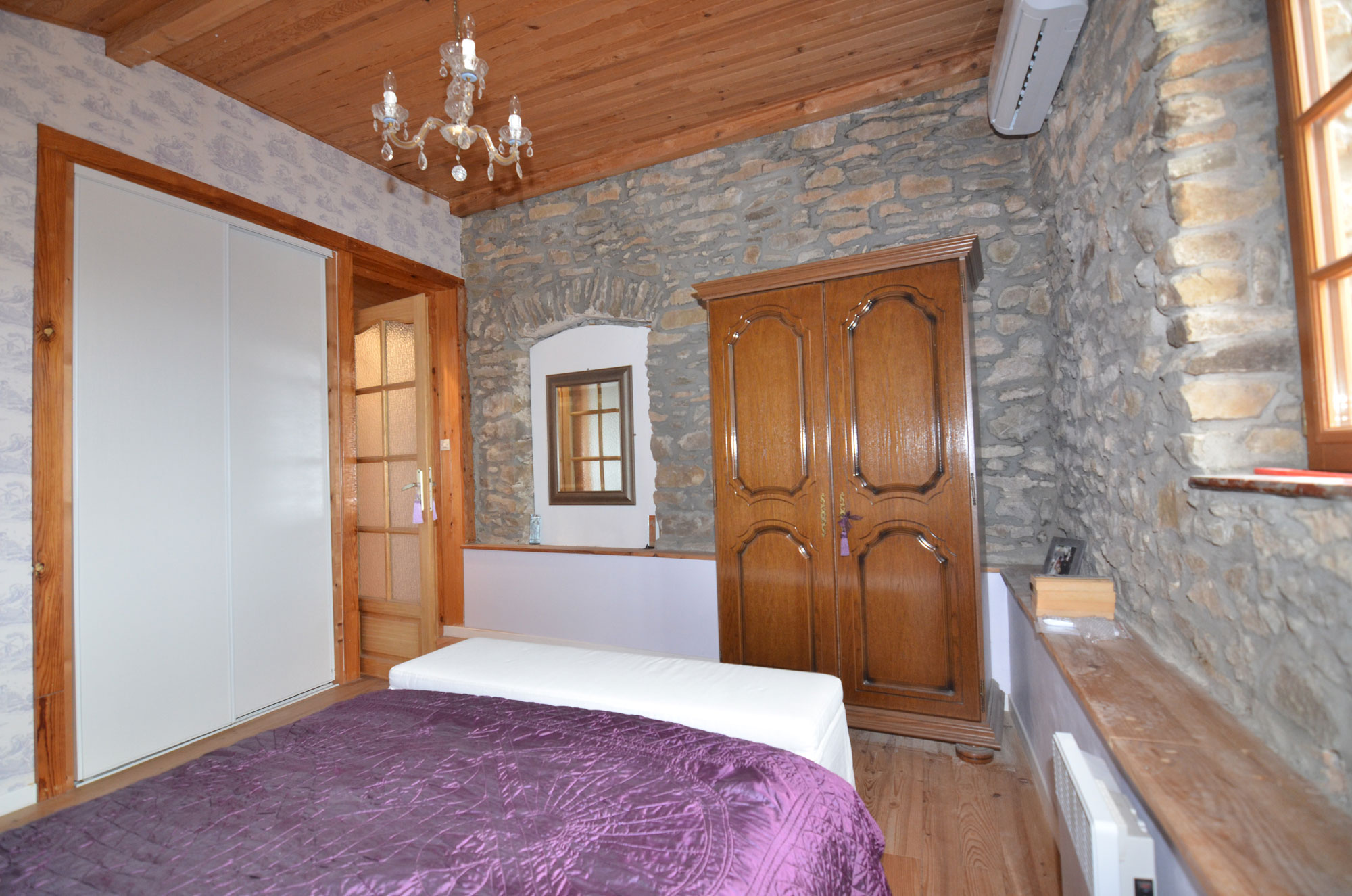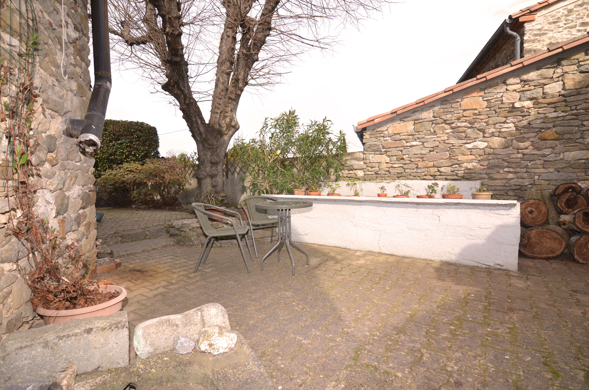 OFFRE ACCEPTEE Par une petite cour d'entrée, on entre dans un hall avec la cuisine à gauche et le salon en face (env. 18 m²). Des portes-fenêtres s'ouvrent sur la cour/jardin d'environ 70 m² avec un petit cabanon à outils et une vue agréable sur le village. Derrière le salon se trouve une buanderie avec un WC . Au-dessus du salon se trouve la chambre principale avec une salle de douche attenante, une armoire intégrée et une climatisation réversible. Au-dessus de la cuisine aménagée et équipée se trouve la deuxième chambre, également avec une salle de douche attenante et une petite mezzanine. La propriété dispose de fenêtres à double vitrage, d'un poêle à bois dans le salon et de belles vues. Les meubles sont inclus. Habitable tout suite!