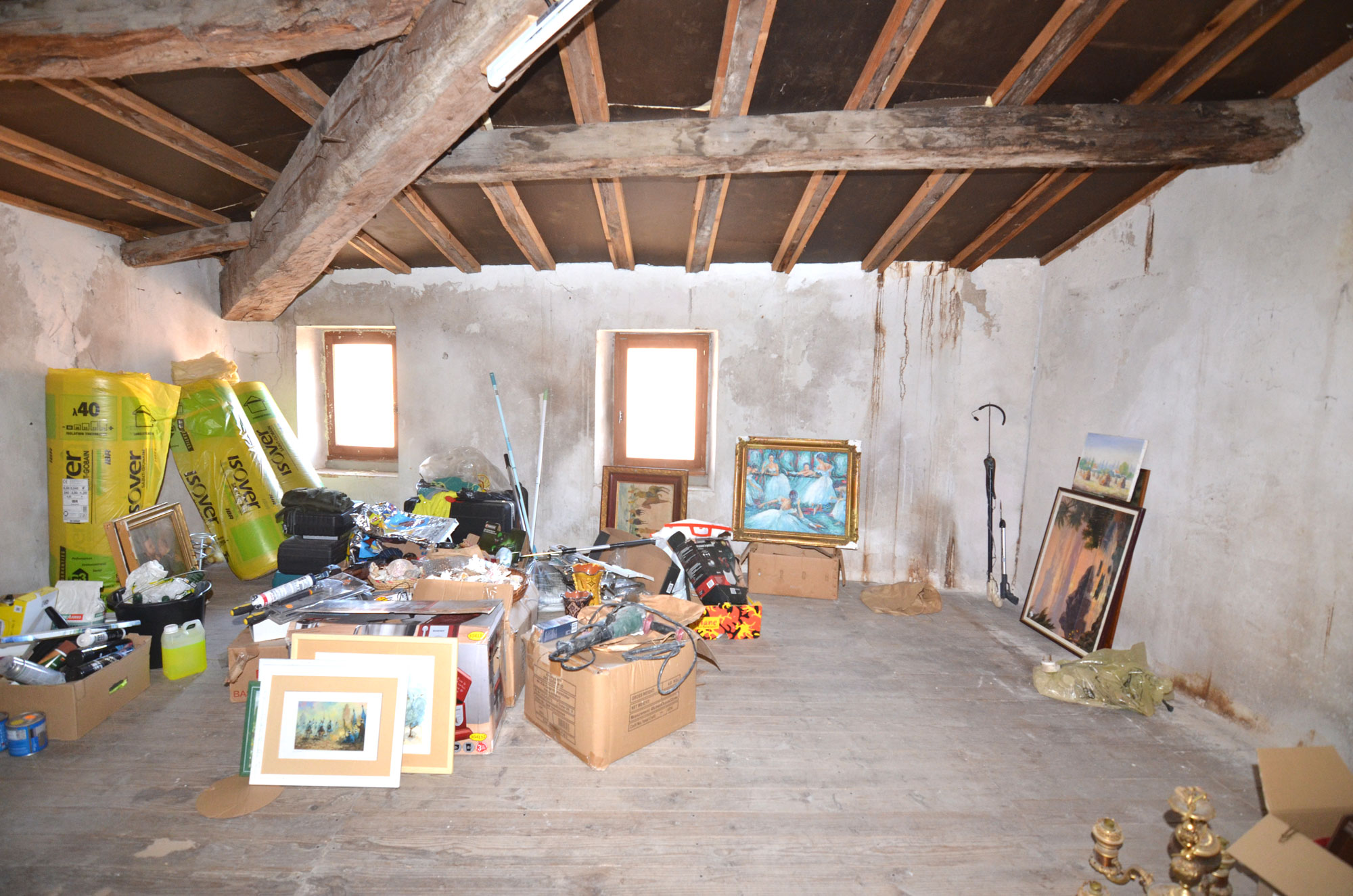 Le rez-de-chaussée abrite la cuisine avec cheminée ouverte, des rangements sous l'escalier, ainsi que le salon avec cheminée en marbre donnant sur la cour et un espace de rangement avec lchaudiere a mazut. Le premier étage comprend trois chambres et une salle de bains/douche. Le toit de grenier a été bien isolé. Les deux combles pourraient être aménagés en espace de vie supplémentaire La maison est solide et en bon état, mais un peu de peinture et de décoration intérieure seraient favourisée.
