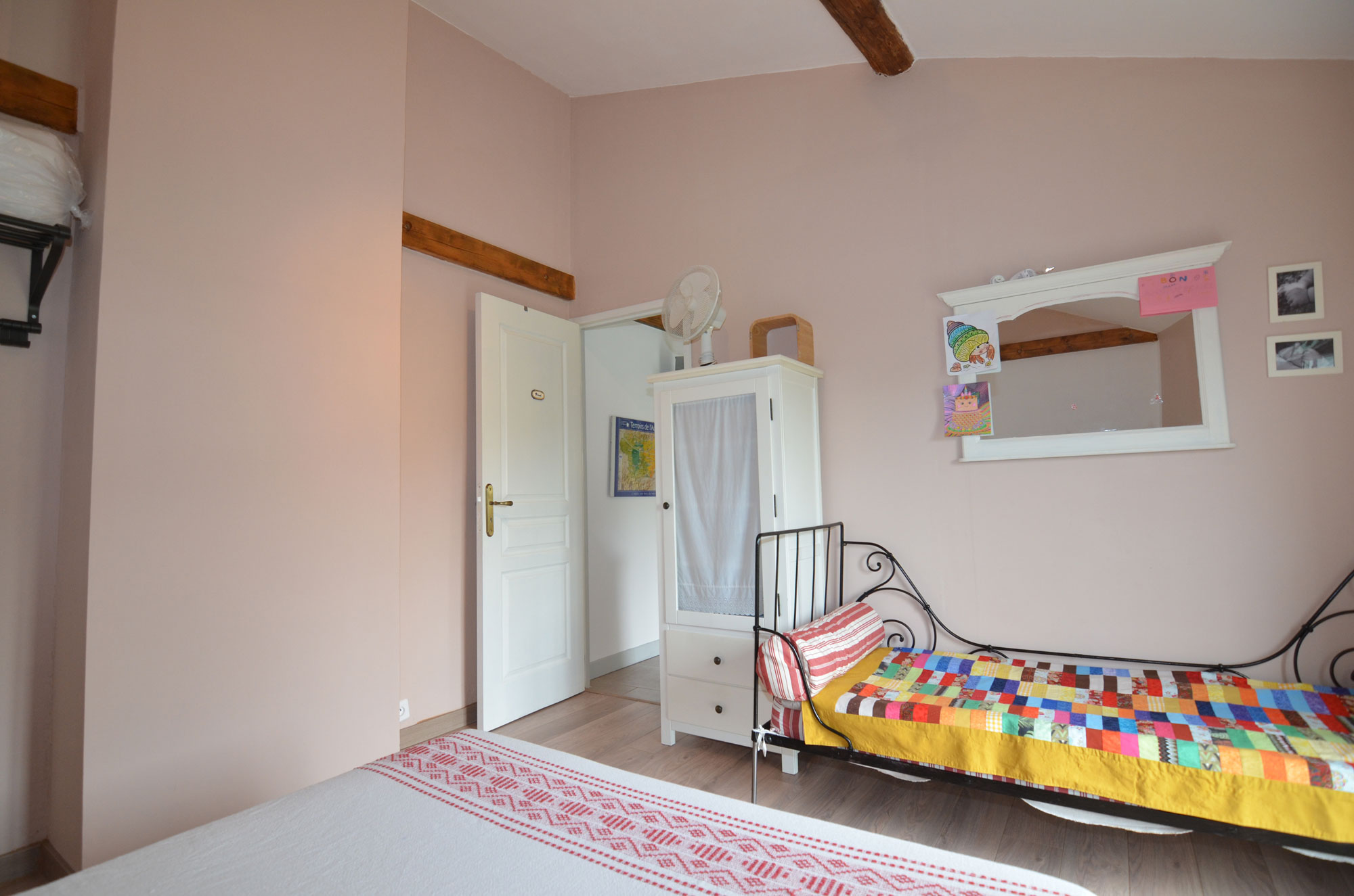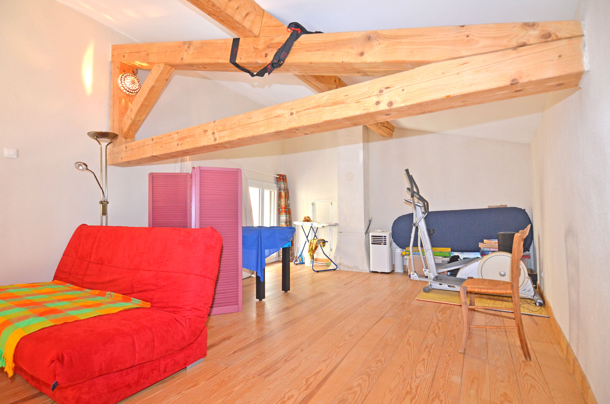Située dans un paisible village vigneron, cette ancienne grange a été entièrement rénovée. L'entrée principale se trouve sur la rue supérieure et donne directement sur le séjour. Il dispose d'une cheminée à foyer ouvert et d'une mezzanine pouvant servir de bureau ou de couchage supplémentaire. La vue sur les environs est magnifique. La cuisine aménagée et équipée se trouve au milieu de ce niveau. La première chambre, une salle d'eau et des toilettes s'y trouvent également. Un escalier descend au niveau inférieur où se trouvent la deuxième chambre et une salle d'eau attenante. L'entrée est indépendante. Le rez-de-chaussée abrite le garage et l'atelier. Juste en face de la ruelle du village, un petit jardin bordant le ruisseau (en grande partie à sec) et un petit abri de jardin.